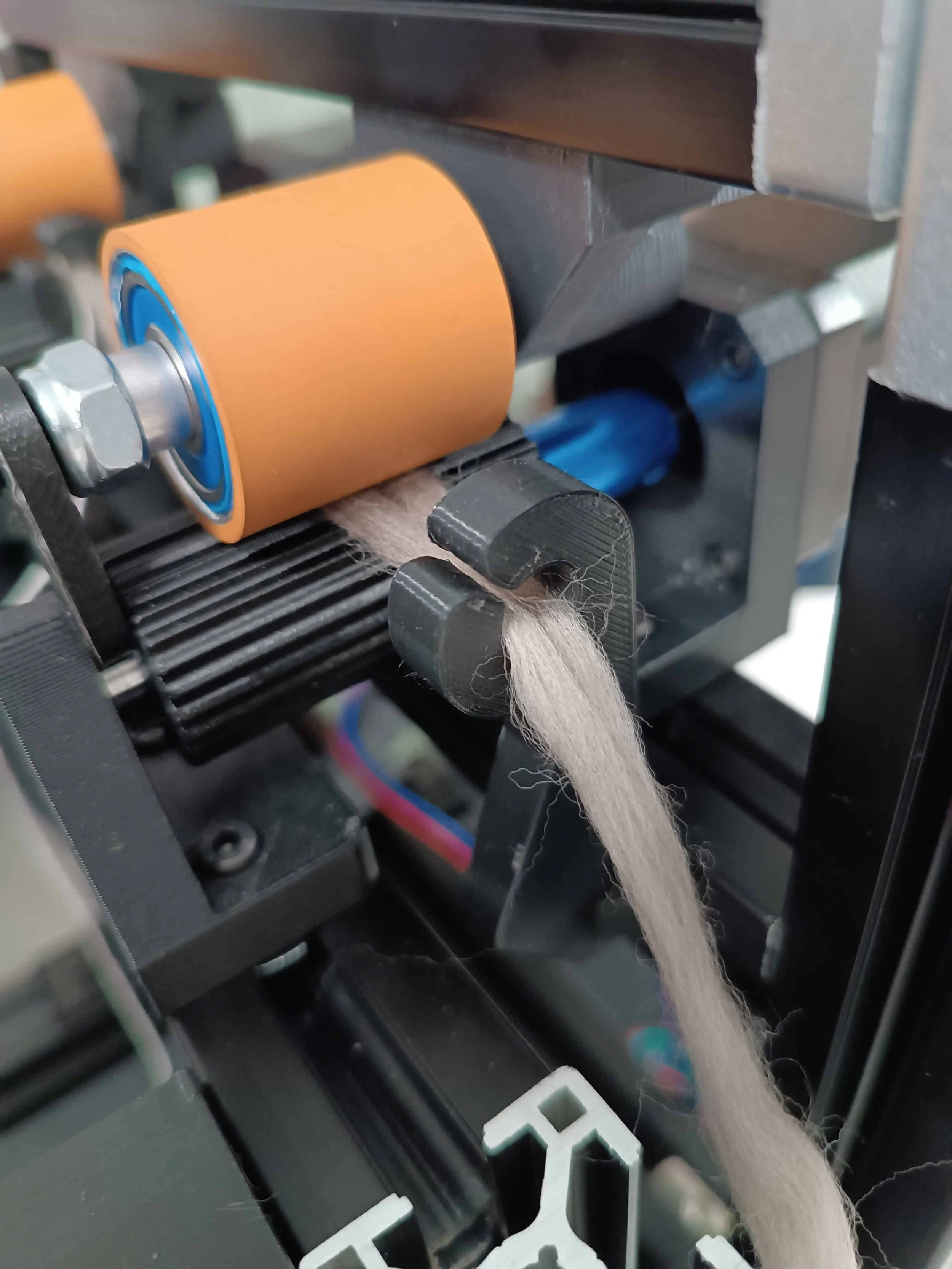 Pencil Roving in der HILO Spinnmaschine. Photo Credit: K. Toepffer.